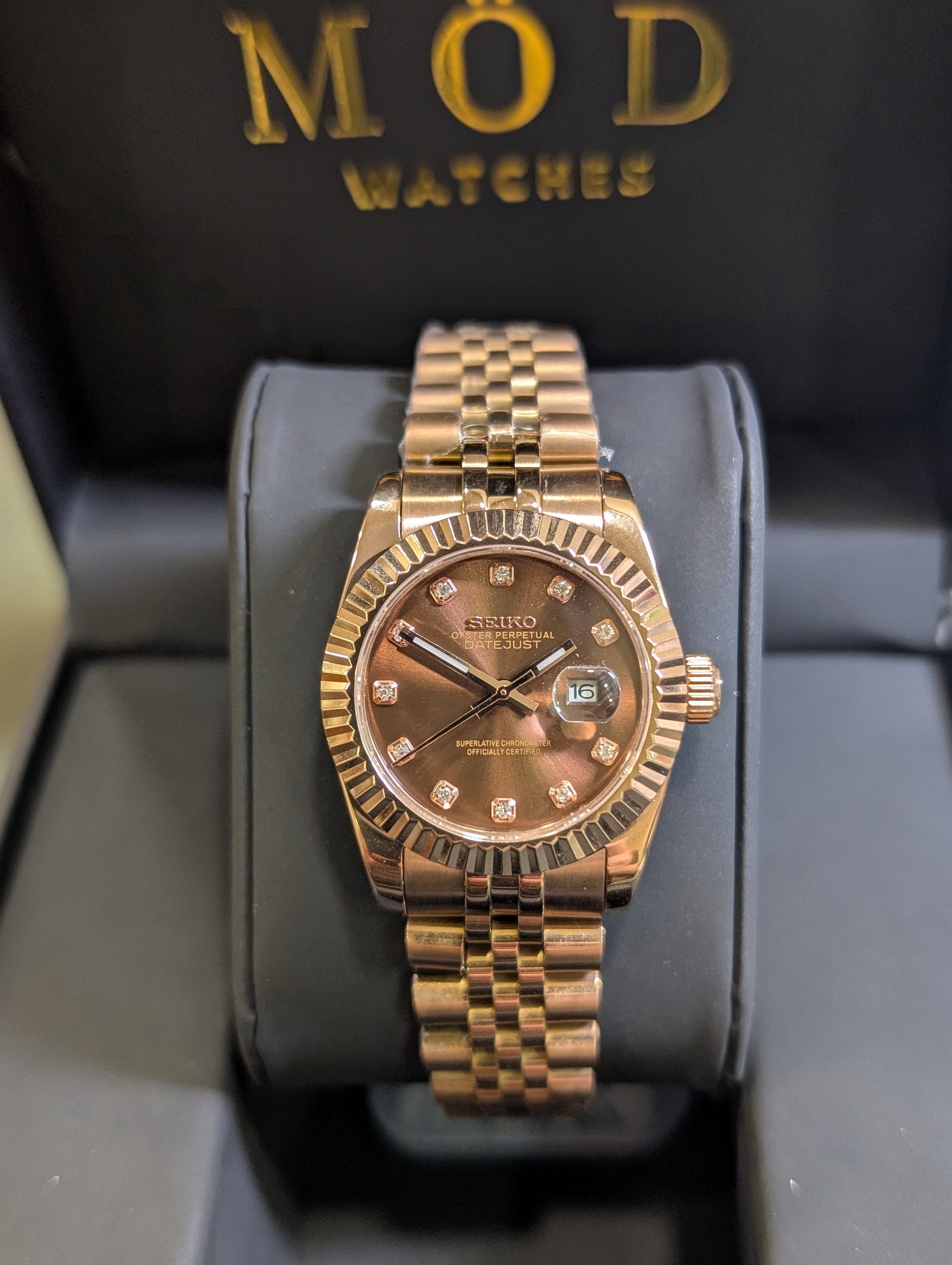 A Seiko Mod is a special watch hand-assembled from a prestigious Seiko automatic or hybrid movement, combined with high-quality aftermarket parts, usually made of 316L stainless steel.